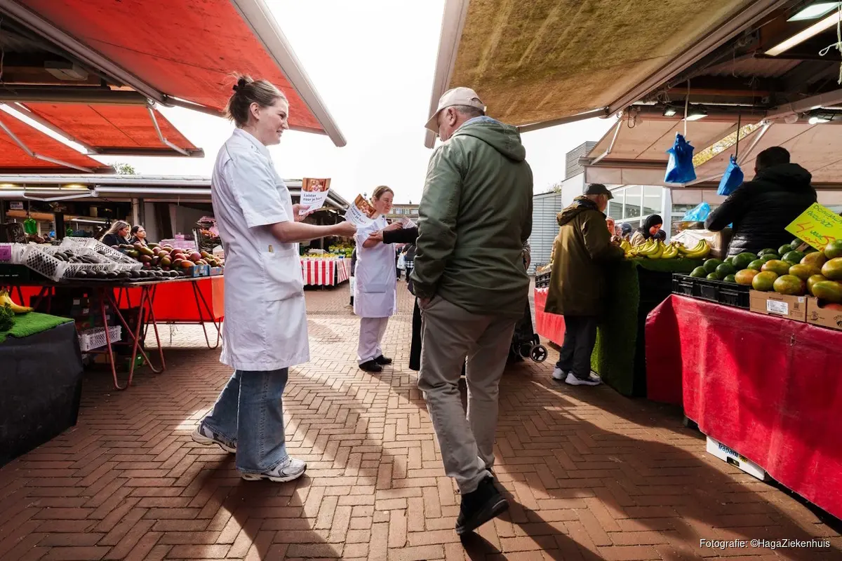 DEN HAAG - Het HagaZiekenhuis, Hadoks en Haaglanden Medisch Centrum slaan de handen ineen om ervoor te zorgen dat inwoners van de regio Haaglanden signalen van hartfalen eerder bij zichzelf herkennen. In aanloop naar de Nationale Hartfalenweek deelden zij vandaag flyers uit op de Haagse Markt, als start van een reeks activiteiten van 20 tot en met 24 april. Met de campagne willen de partijen de bewustwording vergroten en inwoners stimuleren om bij klachten tijdig contact op te nemen met de huisarts.
