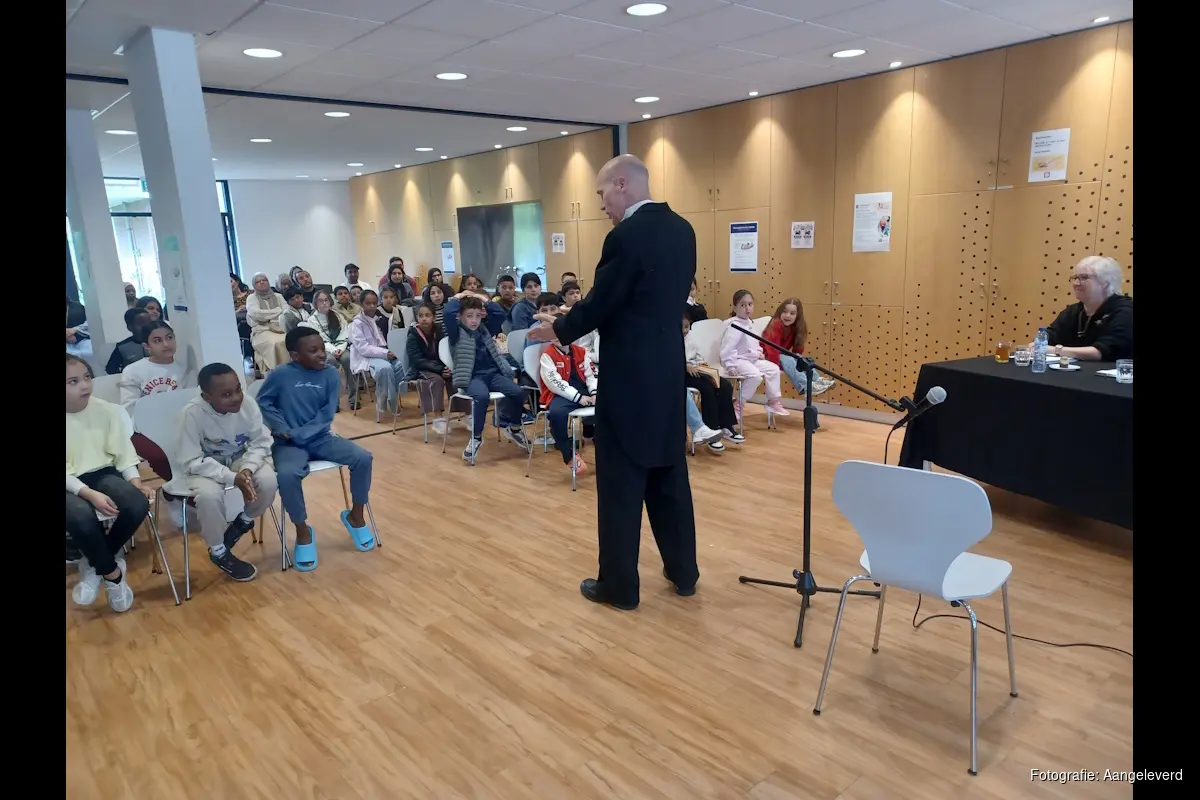 De middag begon met voorlezingen door drie bekende kinderboekenschrijvers: Thijs Goverde, Wilma Degeling en Helen van Vliet. Wilma Degeling vertelde dat zij vroeger werkzaam was als advocaat en rechter, maar uiteindelijk kinderboekenschrijfster werd uit liefde voor literatuur. De kinderen luisterden aandachtig en enthousiast. Het merendeel van hen had een migratieachtergrond en kwam uit de wijk Schilderswijk.