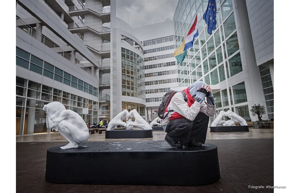 De installatie sluit aan bij een groeiend maatschappelijk gevoel van onrust. Recente inzichten van het Sociaal en Cultureel Planbureau (SCP) laten zien dat veel Nederlanders zich zorgen maken over verharding en toenemende scheidslijnen in het dagelijks leven, terwijl zij juist verlangen naar meer vriendelijkheid en onderlinge verbondenheid. Dat verlangen vormt precies de kern van #StayHuman: laten zien wat ons mens maakt, voorbij de labels en kampen die het debat vaak domineren. De mens in zijn meest pure, kwetsbare vorm – zonder status, zonder masker, zonder bescherming.