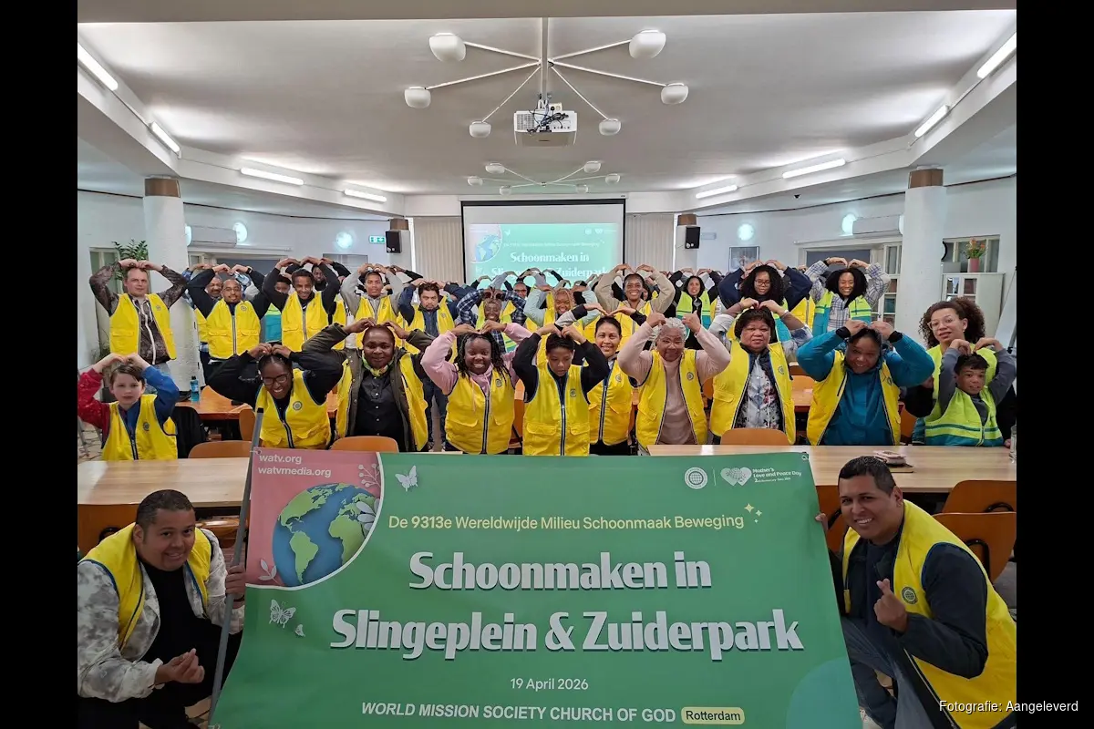 DEN HAAG - De World Mission Society Church of God (Hoofdpastoor Kim Joo-cheol, hierna te noemen Church of God) hield op zondag 19 April de “9313e wereldwijde milieuopruimingscampagne” in Rotterdam. Ongeveer 55 mensen waaronder kerkleden, hun families en buurtbewoners, verzamelden afval in 49 afvalzakken van 80L van het Slingeplein en het Zuiderpark. De Church of God voert momenteel zowel nationaal als internationaal maatschappelijke activiteiten uit om straten, parken, stranden en rivieroevers schoon te maken. Op dezelfde dag voerde de Church of God ook de milieuopruimingscampagne uit in Brussel (België) en Parijs (Frankrijk).