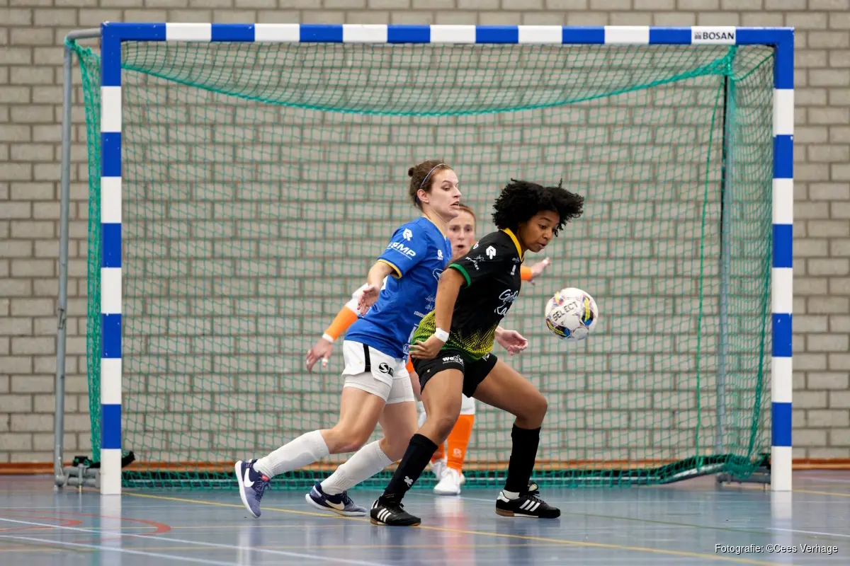 En die hoop was gegrond, want na de pauze kwam de thuisploeg veel beter voor de dag. Via twee ferme schoten van Simone Hand was het binnen vijf minuten alweer 4-4 en het duel dus volledig open. Het werd nu een boeiend schouwspel met mogelijkheden aan beide kanten, maar FC Marlène leek aan de winnende hand toen Amy Visser de 5-4 binnen tikte. Futsal Haaglanden had echter nog wat over en op karakter werd alsnog een punt gepakt toen Barendse tegen haar voormalige ploeg haar tweede treffer maakte: 5-5. In de uiterste slotfase kon er zomaar aan beide kanten nog een winnaar vallen, maar uiteindelijk bleek de remise een terechte eindstand.