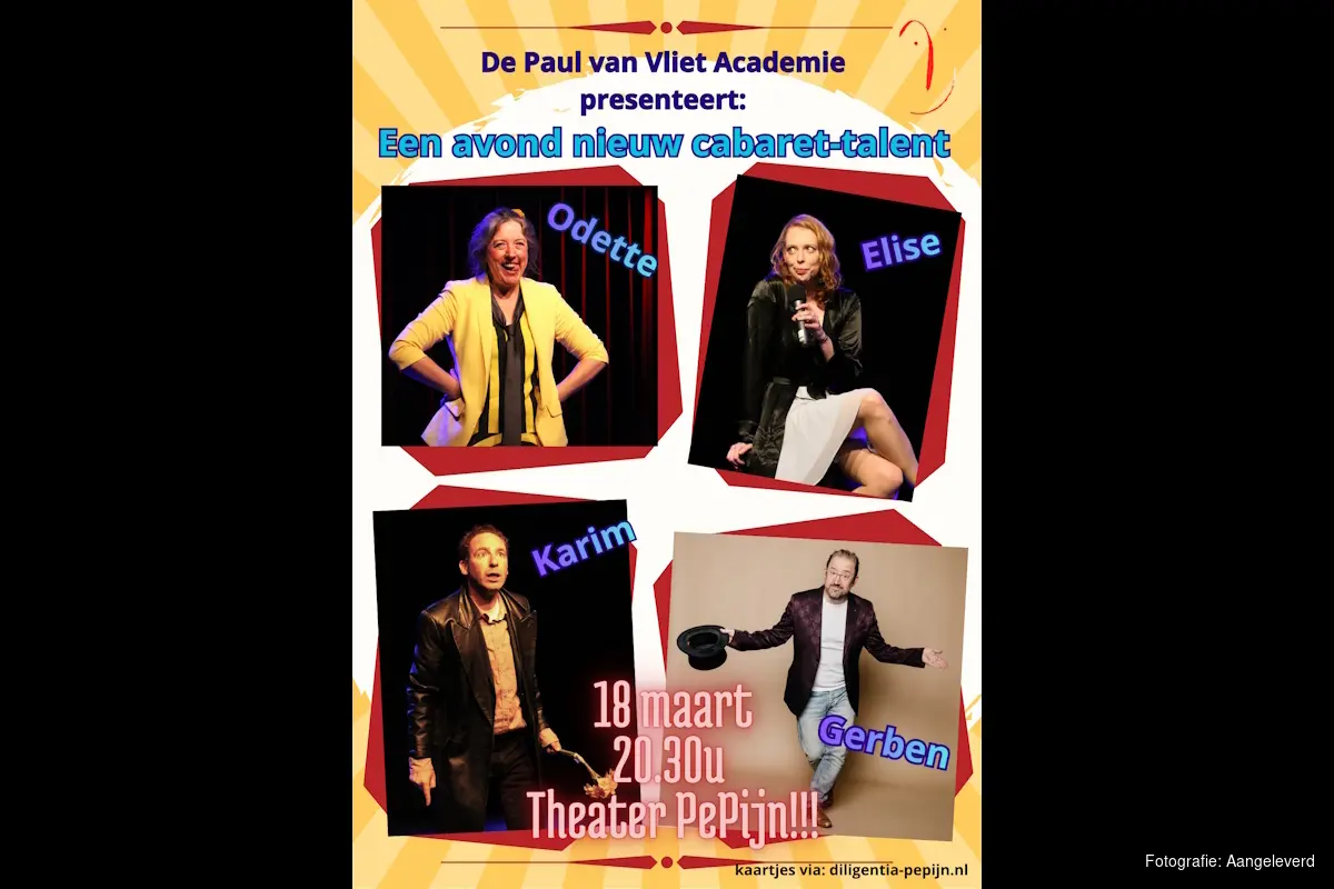 Deze vier jonge net afgestudeerde studenten & talenten presenteren zich in het legendarische theater ‘PEPIJN’ van Paul van Vliet. Hét theater dat nog steeds dé bakermat is voor vele kleinkunstenaars. Zij spelen alle vier 20 minuten uit hun geslaagde afstudeer programma.